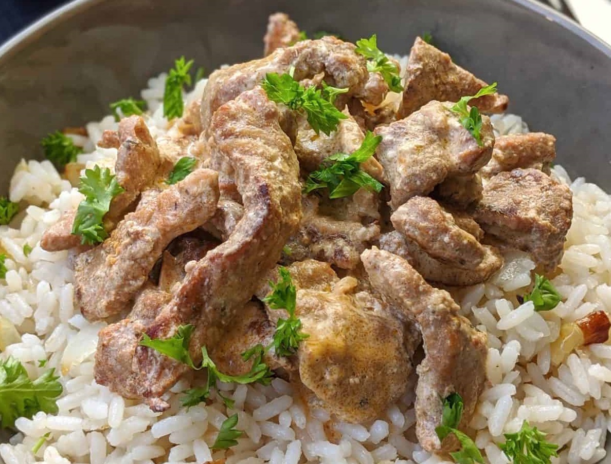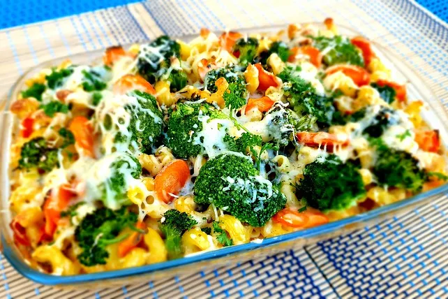 Hack-Schmand Pfanne mit Erbsen und Möhrchen